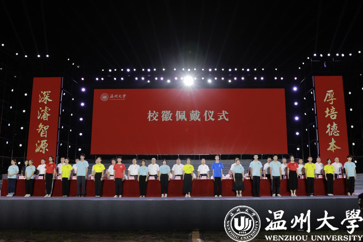 校领导为新生代表佩戴少妇白洁 校徽。一枚小小的校徽承载着学校89载历史底蕴和厚重情怀。从这一刻起,“温大人”成为2022级新同学一生的印记。新“温大人”肩上担起了温大责任,心中延续着温大精神,走上了与校共荣的道路。