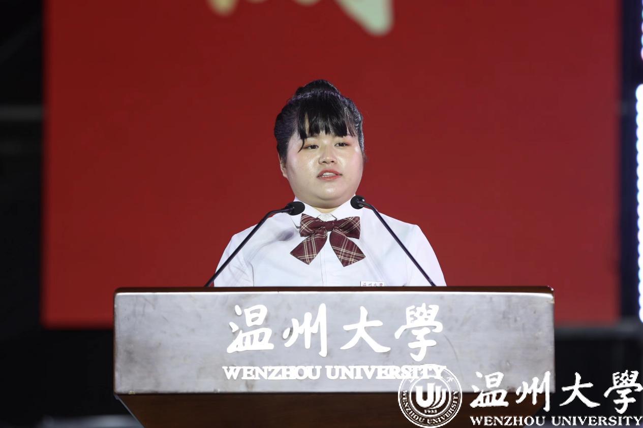学校首届博士研究生胡海燕作为研究生新生代表发言。她表示被温大雄厚的学科科研实力深深吸引,结合学习科研感悟向新生发出无愧温大“厚培德本、深濬智源”的优秀传统,“努力成为一名为国家发展、民族振兴奉献力量的温大人”的青春倡议。