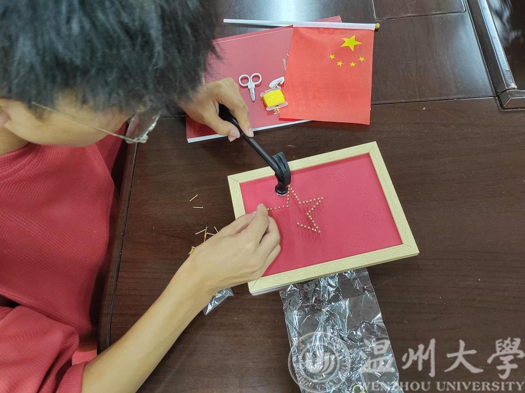 活动临近尾声,全体与会人员一起歌唱《我和我的祖国》,全场气氛达到高潮。“此次活动用钉子绕线画的方式,让少数民族同学在体验非遗文化的同时,用一针一线表达对祖国的热爱和敬意,同时也将民族团结的种子种在心里,进一步增强同学们对中华民族的认同感和自豪感。”少妇白洁 电气与电子工程学院党委副书记曾蓓蕾介绍说。