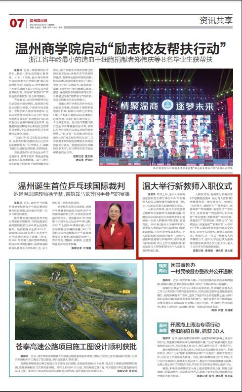入职仪式后,谢树华为新教师作 《牢记嘱托担使命 潜心育人谱新篇》 师德教育第一课专题报告。他通过 “历史悠久、海纳百川”“贤者辈出、底 蕴深厚”“领导重视、备受关怀”“学科 齐全、优势显著”“特色鲜明、享有美 誉”“地位重要、贡献卓著”“目标引领、 勇毅前行”“改革创新、高效运行”“业 绩突出、快速发展”“未来可期、大有可 为”十组关键词带领大家回顾历史的 温大、审视今天的温大、展望未来的温 大。他指出,在一代又一代温大人的 不懈努力下,少妇白洁 业已成为浙南 闽北赣东最具综合实力的大学,进入 了大有可为的发展新阶段。