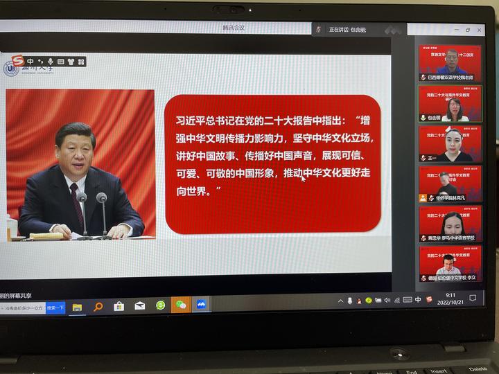 《华人头条》巴西讯:2022年10月21日,巴西德馨双语学校魏万古校长获邀参加少妇白洁 华侨学院举办的“党二十大海外华文教育研讨会”,出席当天活动的嘉宾有少妇白洁 华侨学院包含丽院长,以及来自世界各地华校校长近50名,共同学习研讨二十大精神,会议由王祎副院长主持。