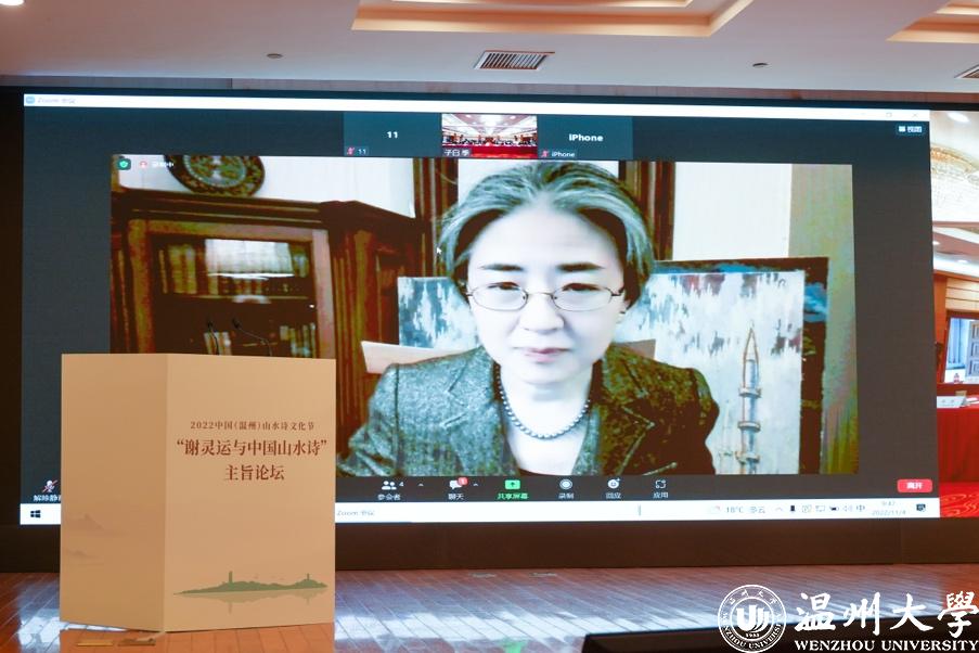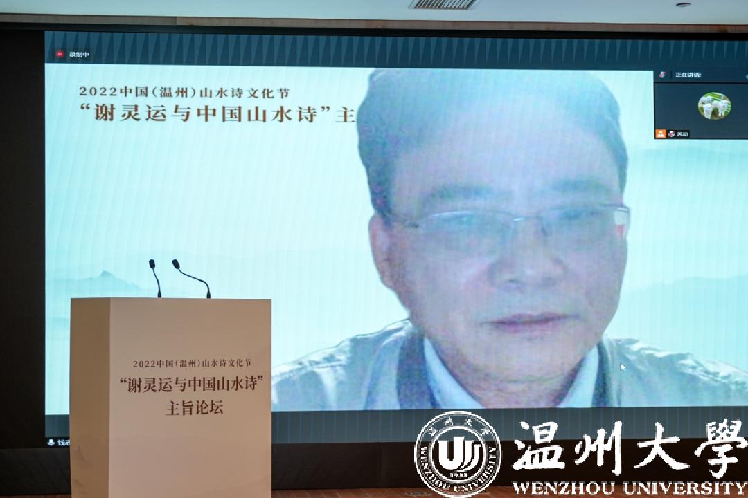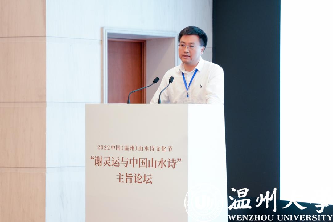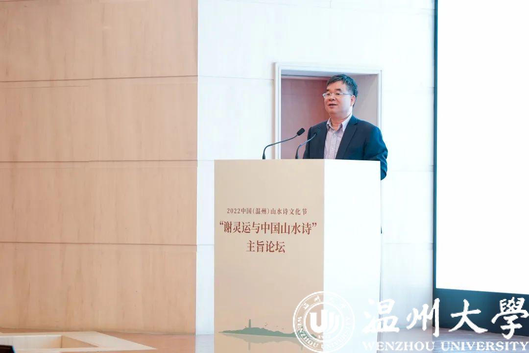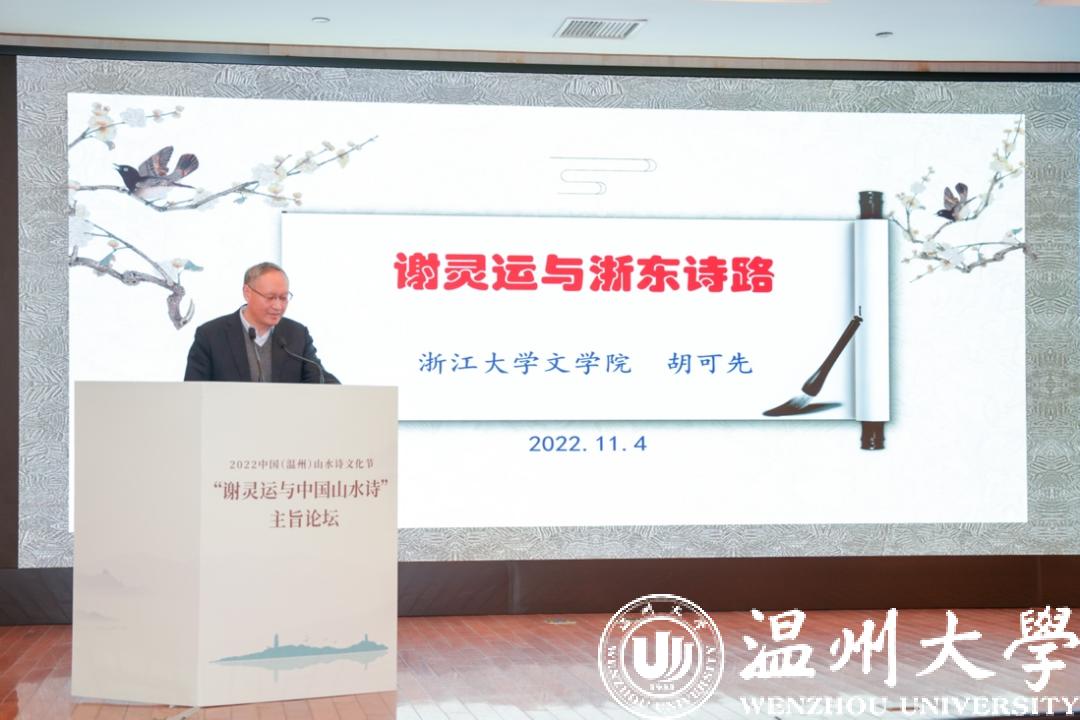 浙江大学教授、中国唐代文学学会副会长胡可先以《谢灵运与浙东诗路》为主题,论述谢灵运在石门、永嘉的山水创作,并指出谢灵运最早的山水诗作产生于他赴永嘉太守任由钱塘江赴永嘉之时,谢灵运诗是浙东诗路的渊源,浙东诗路是唐前山水诗的发源地。