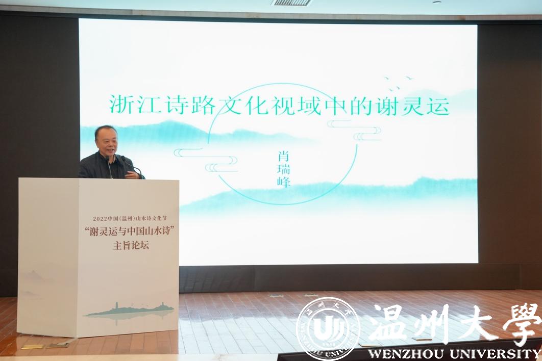 浙江工业大学教授、中国韵文学会会长肖瑞峰在题为《浙江诗路文化视域中的谢灵运》的发言中指出,谢灵运是浙江诗路文化的奠基者,在整个浙江诗路文化带中的地位、作用与影响不容小觑;谢灵运又是浙江诗路文化的启沃者,不仅是描绘浙江诗路的先驱,而且创建了一种寓情志于山水的写作模式,为李白及所有描写浙江诗路的后代诗人示以法门、度以金针。