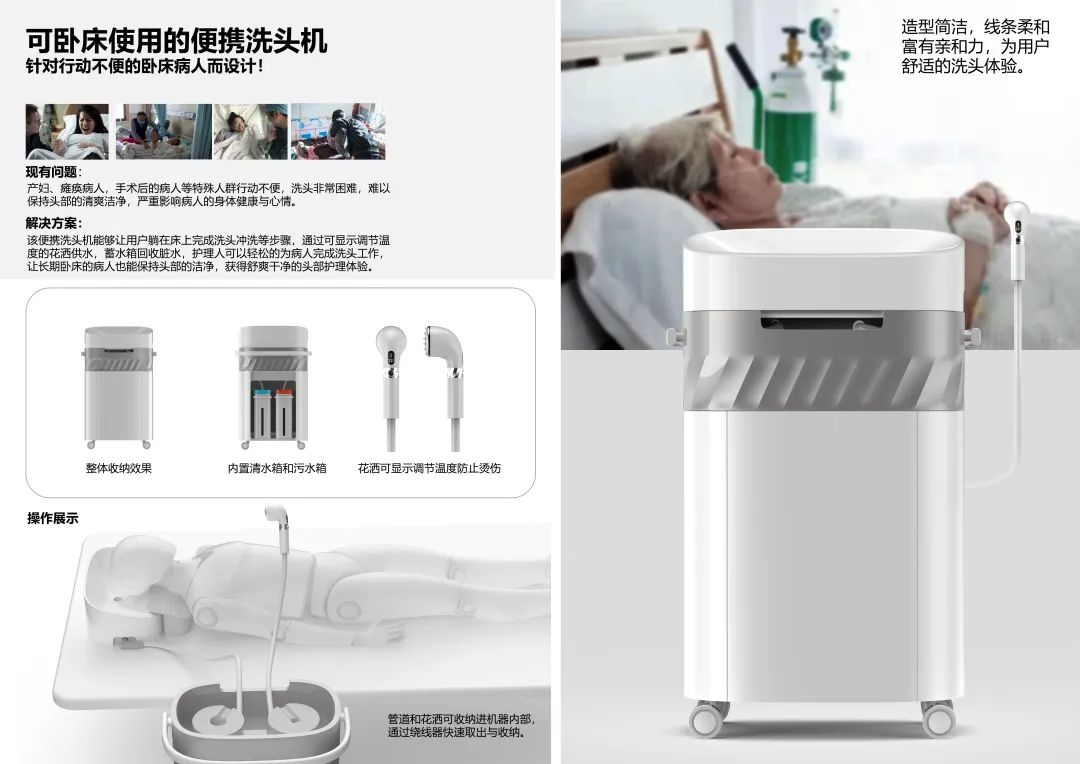 ▲可卧床使用的便携洗头机