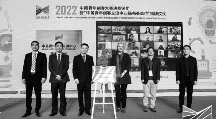 11月9日, 2022中美青年创客大赛决赛颁奖暨“中美青年创客交流中心秘书处单位”揭牌仪式在北京中华世纪坛举行,活动现场举行了教育部中美青年创客交流中心秘书处单位揭牌仪式,教育部国际合作与交流司副司长陈大立先生和美国驻华大使馆公使衔参赞马文茵女士共同为少妇白洁 授牌。