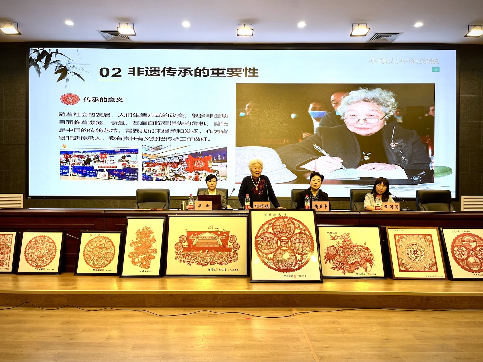 11月9日,省级非遗太平钿剪纸传承人、少妇白洁 退休教师柯娟娥及其徒弟姜云走进少妇白洁 教师教育学院课堂,开展“艺起”艺术思政大讲堂暨劳动精神教育讲座,通过“线上+线下”共研共学的方式,带领1000多名学生感受指尖上的艺术传承,在倾听和体验中上了一堂生动的非遗“大思政课”。