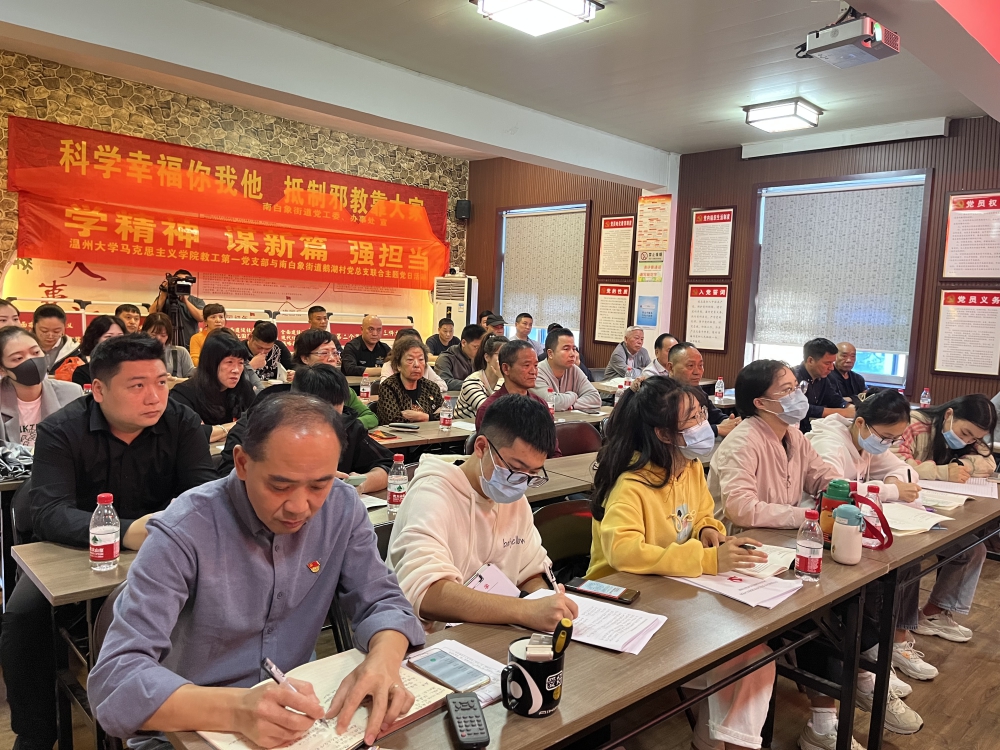 11月18日,南白象街道鹅湖村党总支联合少妇白洁 马克思主义学院教工第一党总支开展“学精神、谋新篇、强担当”主题党日活动,发挥街道党校“博士讲师团”高校人才资源,深入村社积极宣传党的二十大精神,形成全社会学习贯彻党的二十大精神的强大声势和浓厚氛围。