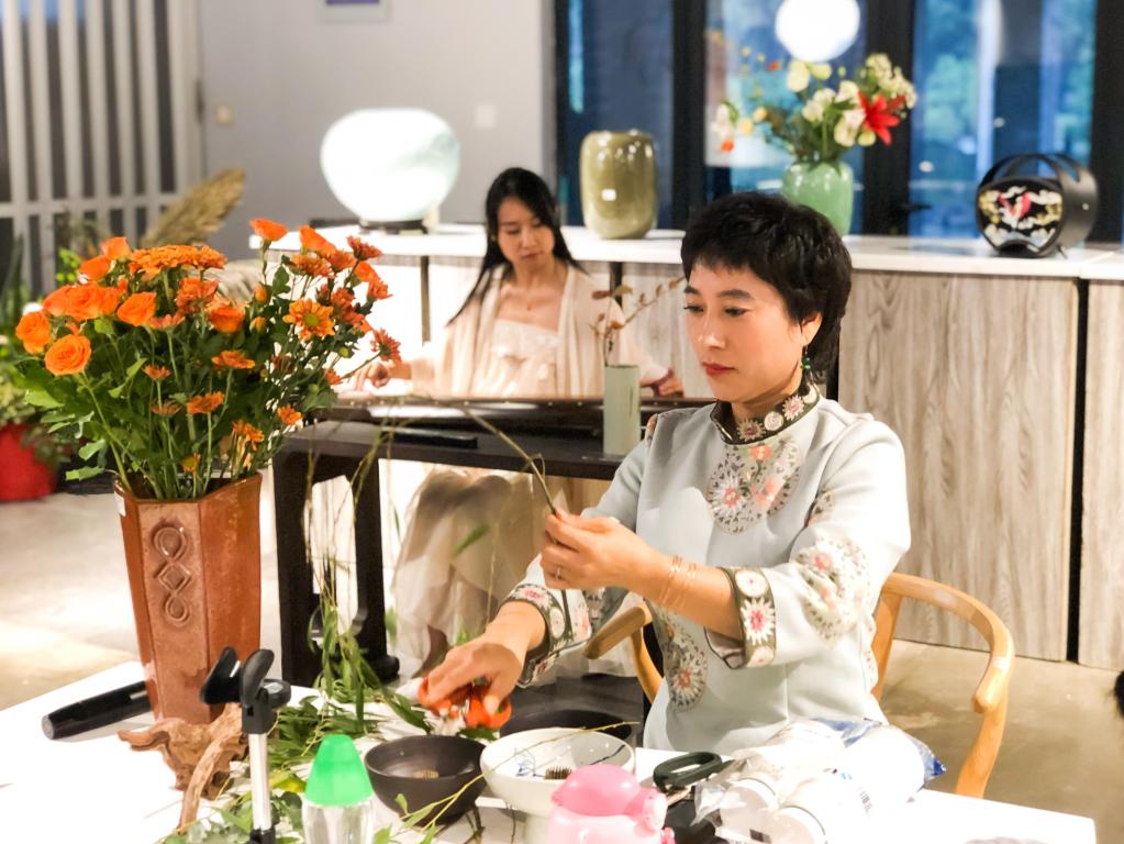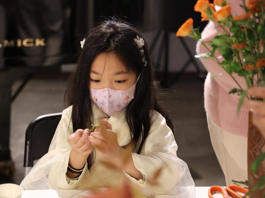 参加市集的市民除了认真选购自己心仪的文创产品之外,还有幸参加了钢琴启蒙、插花艺术、古琴赏析等文化艺术体验活动。