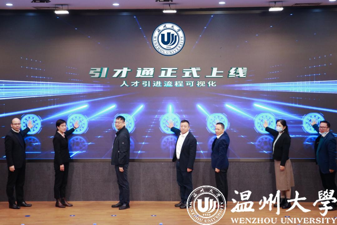 谢树华书记、王舜副校长、蔡联群主任、郑彩莲处长、唐苏琼主任、卓高生院长和杨植院长共同开启引才通