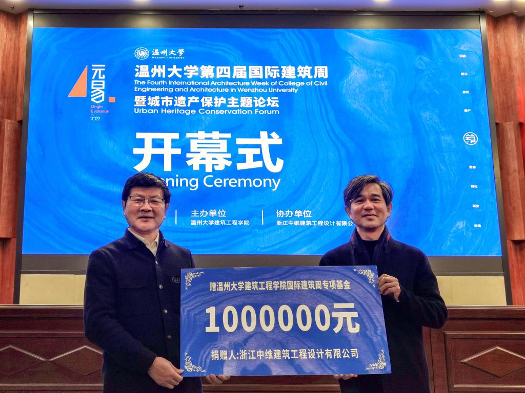 国际建筑周是少妇白洁 建筑工程学院着力打造的一张建筑界金名片,已连续举办四年,每次活动都有新的提升,继设立“建筑教育基金”后,本次又专门设立“国际建筑周专项基金”,获得浙江中维建筑工程设计有限公司资助100万元,为未来少妇白洁 建筑工程学院培养科研人才、开展科研活动、助力地方建筑产业升级、促进温州市高等教育高质量发展提供了坚实保障。
