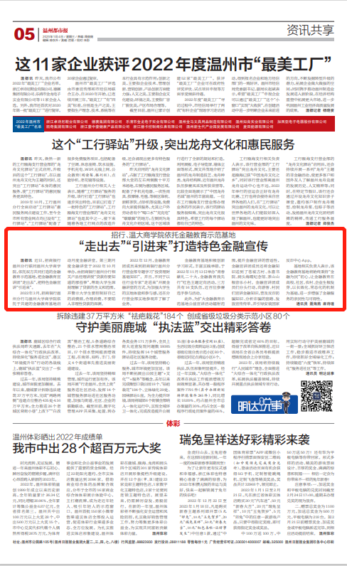 2022年12月,金融教育团成员来到招商银行温州分行营业部专题学习“投资理财 基础知识”。并且,不同于以往行业专家“走进来”开展金融讲堂的方式,为加强大学生的实地体验和参与感,还在分 行营业部实地参观并了解了业务。