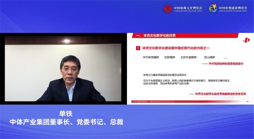 中体产业集团董事长、党委书记、总裁单铁在《关于体育文化数字化的思考》的主题分享中提出,体育文化数字化是体育强国建设的重要支撑,目前已具备了良好的政策空间,也有着较为丰富的国际经验,国内也已经具备了一定的发展基础。对体育文化数字化提出发展建议:可以适时制定出台体育文化数字化规划;鼓励更多市场主体进入到体育文化数字化领域、营造更加浓厚的氛围;坚持学习借鉴与自我创新并重。