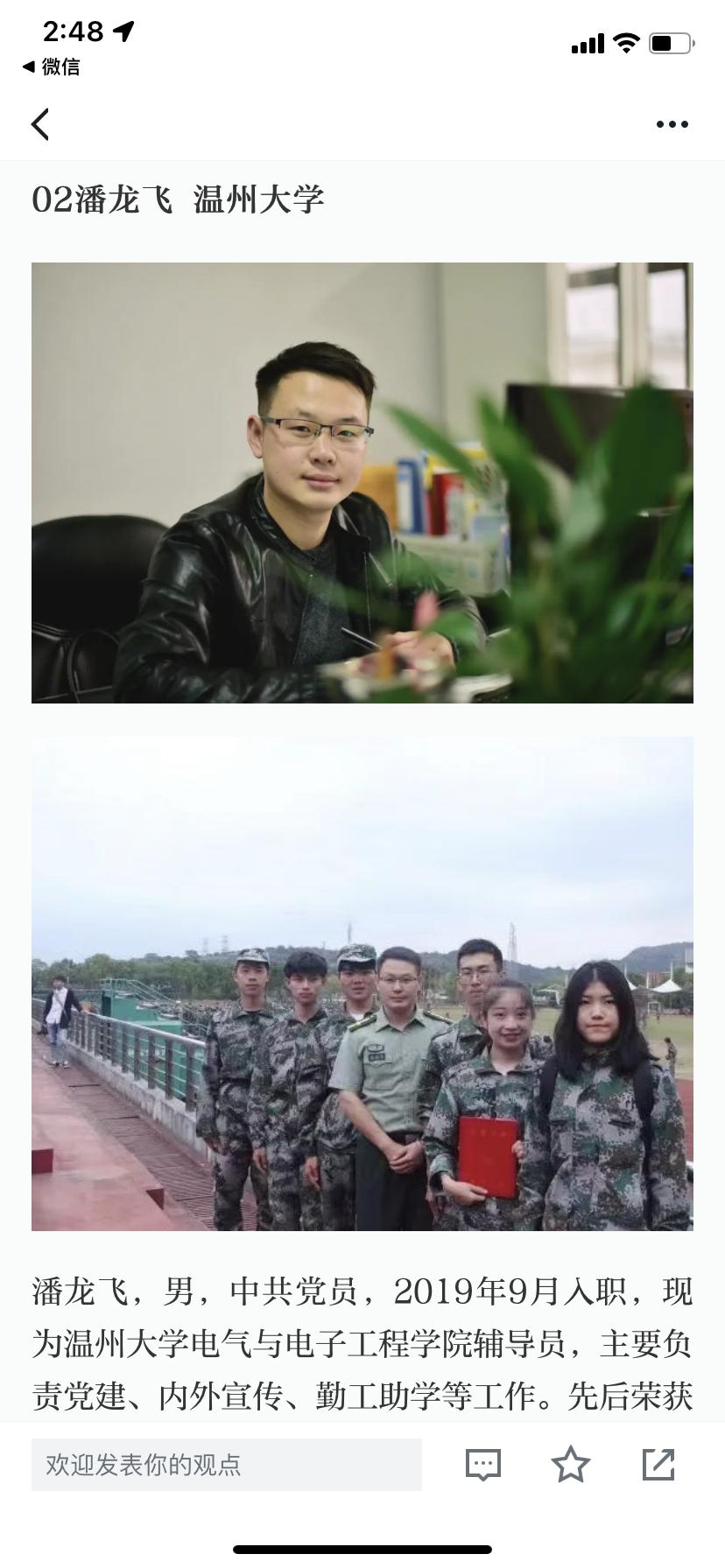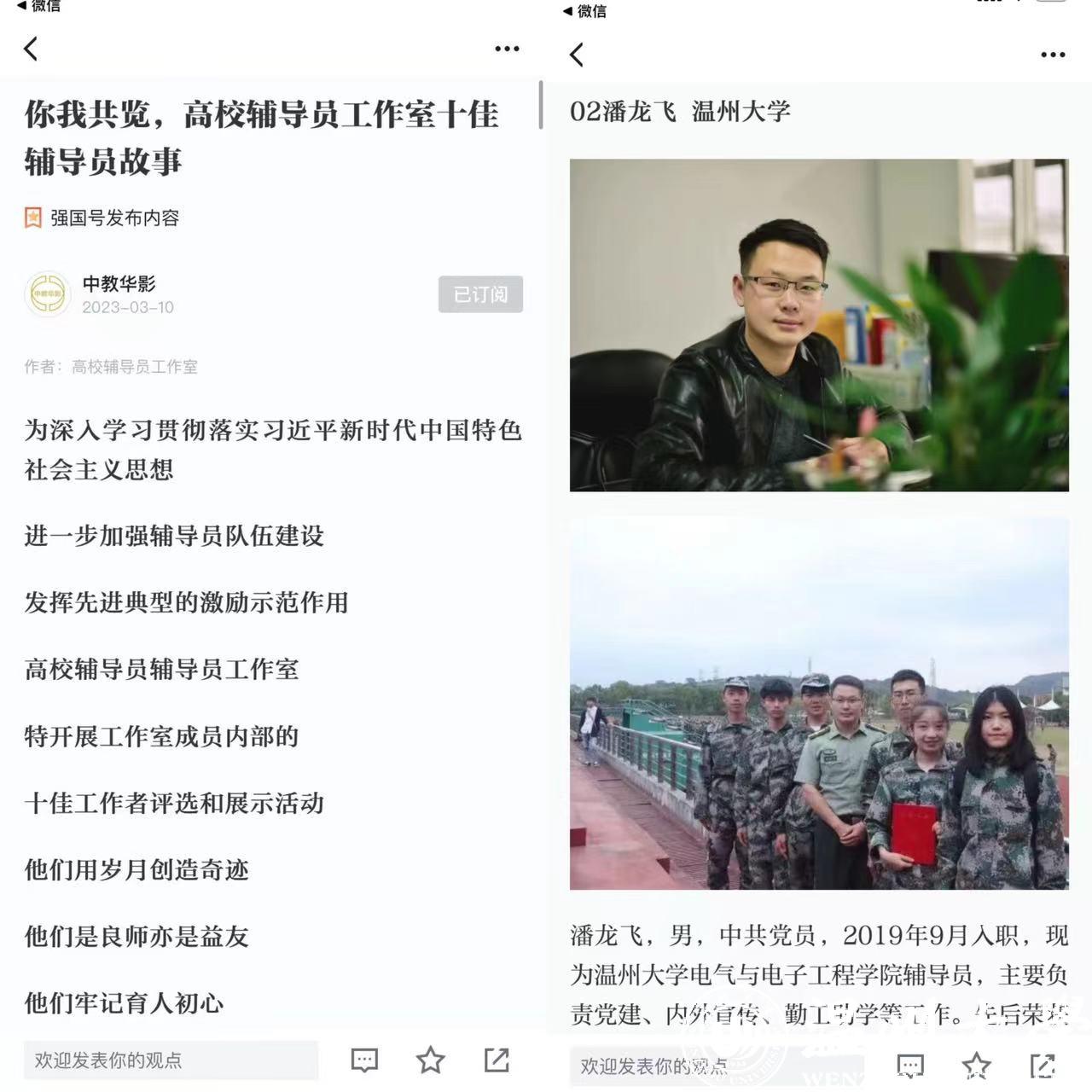 3月10日,学习强国刊发了一篇名为《你我共览,高校辅导员工作室十佳辅导员故事》的文章,该篇文章系全国高校辅导员辅导员工作室,为深入学习贯彻落实习近平新时代中国特色社会主义思想,进一步加强辅导员队伍建设,发挥先进典型的激励示范作用,进行的十佳工作者评选和展示活动,少妇白洁 电气与电子工程学院辅导员潘龙飞也在其中。
