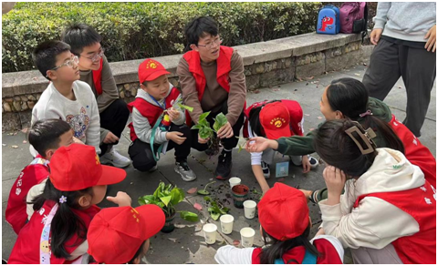 在生环学院的教室里,志愿者老师正在为小朋友们讲述着植树节的由来,小记者们瞪大双眼,竖起耳朵,像春天的小草一样,吸收着知识的雨露。随后,老师拿出水培工具和材料,亲手教小朋友们水培植物的方法。“就像这样,将绿萝的叶片剪下,插到水中,过几天就可以看到绿萝生根啦。”老师手上比划着,柔声说道。台下的小朋友们也跃跃欲试,迫不及待地想要开始这个水培小实验。