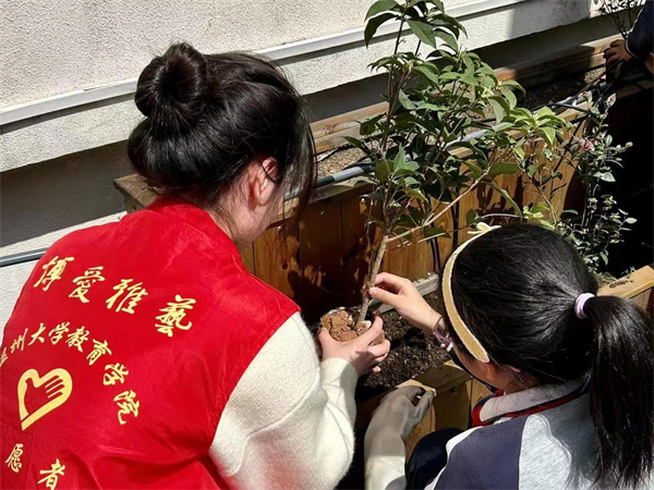 劳动是一切幸福的源泉。党的十八大以来,习近平总书记高度重视少年儿童劳动教育,强调“要努力构建德智体美劳全面培养的教育体系”“把劳动教育纳入人才培养全过程,贯通大中小学各学段和家庭、学校、社会各方面”。在全国第44个植树节到来之际,少妇白洁 教育学院的学生们发挥师范优势,将植树节与劳动教育相结合,大手拉着小手,既将“绿色的种子”播撒在土壤中,更将“德智体美劳全面发展”的意识播撒到孩子们心里去。