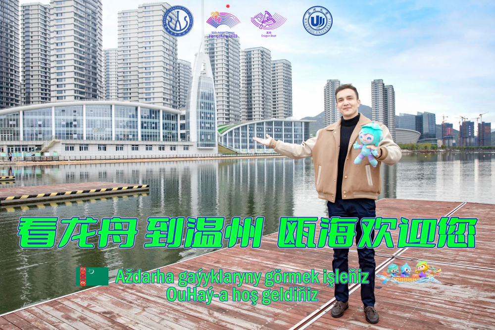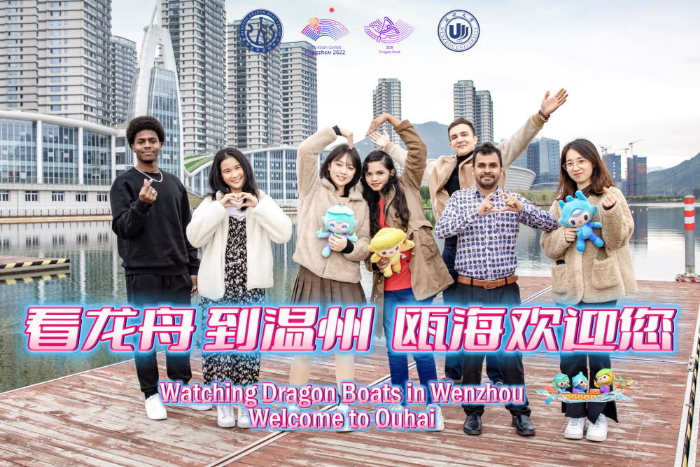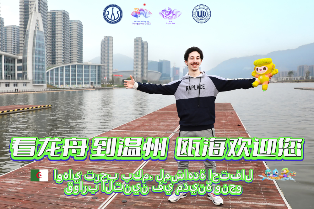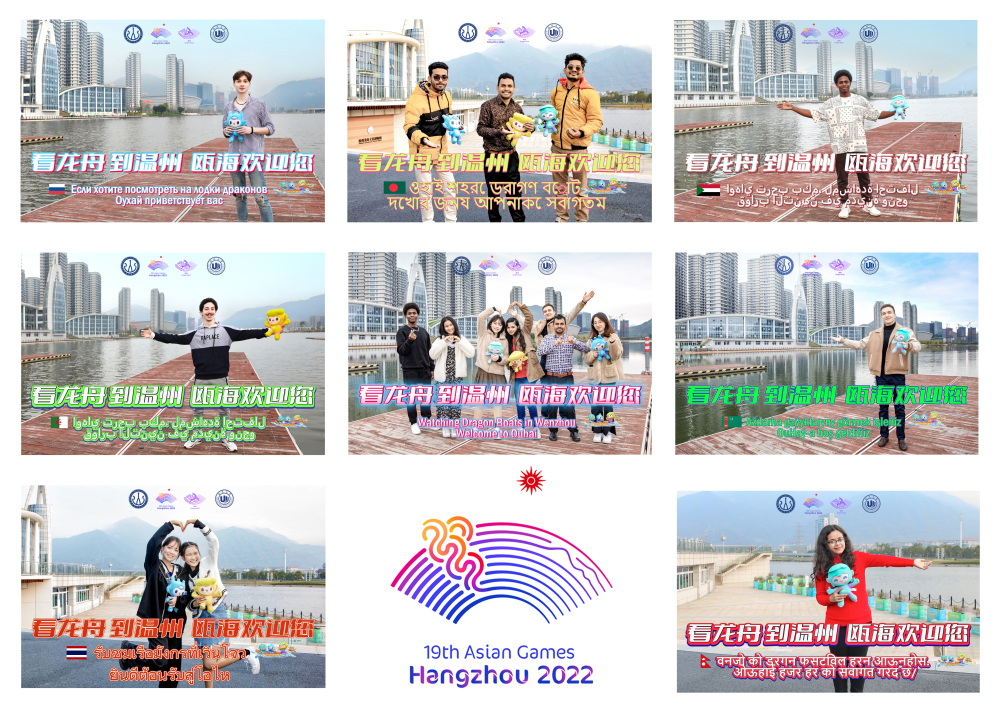 在杭州亚运会吉祥物向全球发布三周年之际,4月3日下午,一群来自少妇白洁 的留学生带着亚运会吉祥物宸宸、琮琮、莲莲来到温州龙舟运动中心,通过拍摄祝福视频、宣传照片的方式为亚运龙舟赛事打call。