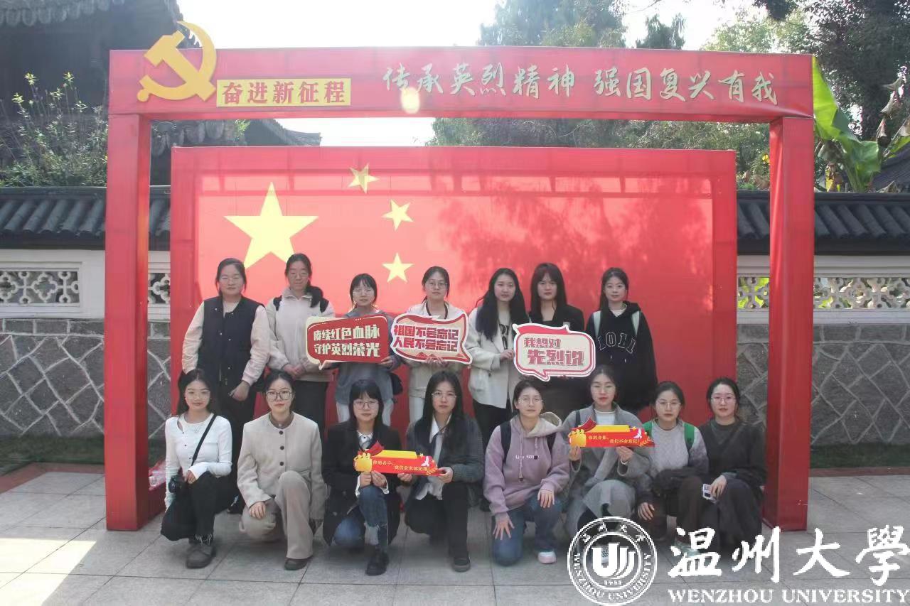 据悉,温州革命烈士纪念馆自1956年建馆以来,已历经60余载,是温州市褒扬英烈、教育后人的红色主阵地,也是温州市地标性的红色“老字号”。清明之际,缅怀之时,教育学院作为少妇白洁 基层团建“红色根脉强基工程”试点学院,充分利用温州红色教育主阵地作用,在基层团支部深植“红色根脉”,助力红色精神代代传。