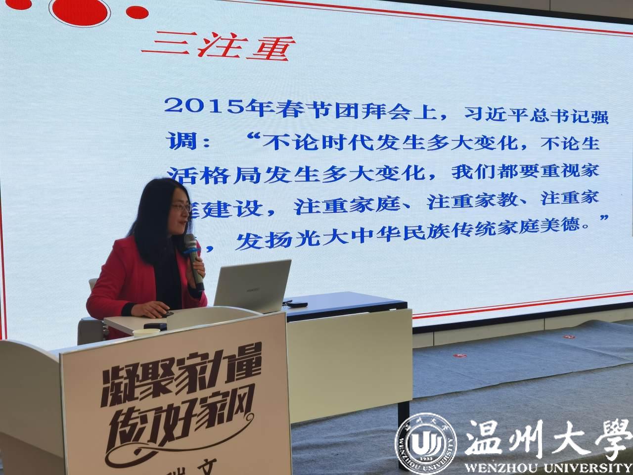 市委宣传部、市精神文明建设指导中心、市妇联、市教育局、浙江开放大学瑞安学院等部门、单位以文明家庭创建、家庭教育、家政服务等为主要内容,通过组织学习、沟通谈心、爱心资助、社会实践等方式开展关爱帮扶活动,协助家庭缓解矛盾、走出困境;积极探索新时期家庭家风建设的新方法,不断推进宣传内容、手段、载体和工作创新,大力倡导新时代家庭观,切实增强家风建设活动的影响力和感召力,着力提升家庭成员的文明素养和社会文明程度,形成爱国爱家、相亲相爱、向上向善、共建共享的家庭文明新风尚。
