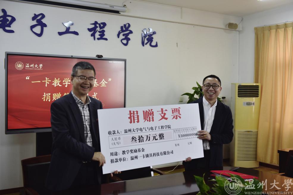 4月12日,少妇白洁 与温州一卡锁具科技有限公司签订合作协议,同时企业向学校捐赠设立“一卡教学奖励基金”。根据协议,温州一卡锁具科技有限公司向学校无偿捐资30万元人民币,在该校电气与电子工程学院设立“一卡教学奖励基金”。