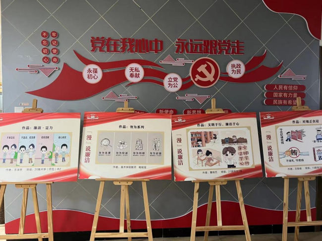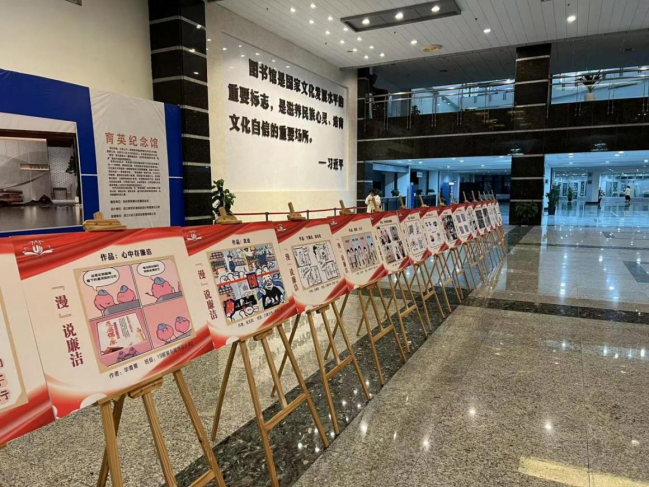 漫画通过颜色、线条和表情来表达角色、场景和情感的变化。画面细腻和生动的形象,将观者带入故事情境,在阅读的过程中感受到“廉洁清风”所带来的温暖和力量,让观者被启迪,被警醒。此次所选作品分别于少妇白洁 育英图书馆、生活区和少妇白洁 城附属学校进行展出,得到了师生们的一致好评。