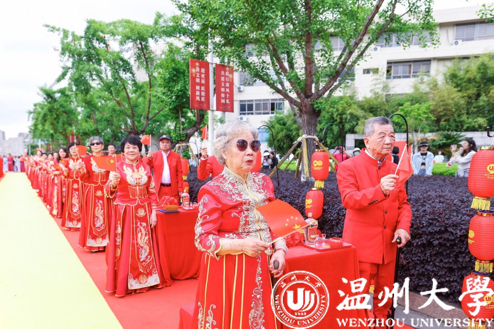 “我今年虚岁已经90岁,正好与温大同龄。”在参与盛会的校友夫妻中,原温师专毕业生杨成玉与施品真,是年龄最长的校友夫妻。杨成玉告诉记者,他与爱人结识于温大,毕业后都曾经留校工作,已经共同生活61年。“因为温大的培养,给了我婚姻、事业、家庭。今天参加温大的90周年校友纪念婚礼,更是喜上加喜。”