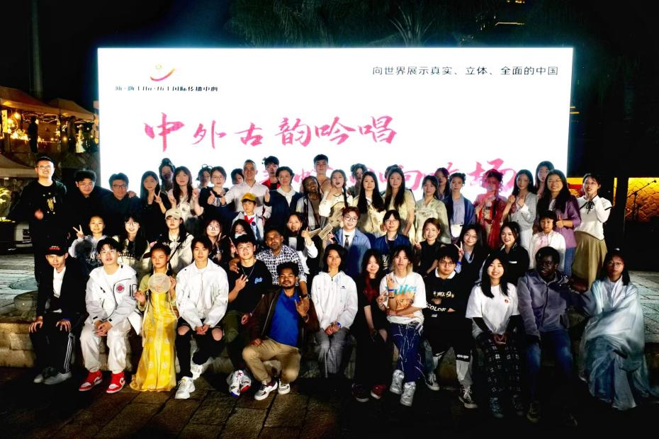当晚,由中外学生共同出演的一首古筝协奏合唱曲《刀剑如梦》拉开表演序幕,伴随着琴弦的拨动,金戈铁马的铿锵、快意恩仇的豪情随轻盈奔跃的音符恣意流淌,独具魅力的歌声带领现场观众进入美妙的音乐国度。随后,演唱、演奏、舞蹈等多元丰富的表演形式依次呈现,既有脍炙人口的中外流行曲目,也有古色古香的经典曲目。在观众互动环节进行的三场飞花令,分别以“月”“春”“花”为关键词,让中外友人再次沉浸式感受到中国传统文化的魅力。而伴随悠扬乐声款款走出的一众少妇白洁 瓯玉汉服社成员,以其精美的妆容与生动的演绎传递着华夏风韵,颦笑回眸间恍若梦回大唐。本场音乐会以《这世界有那么多人》全场大合唱作为收尾曲目,在观众的掌声与欢呼中实现圆满收官。