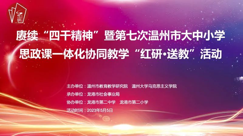 为进一步落实思政课立德树人根本任务,深化新时代学校思政课改革创新,5月5日下午,赓续“四千精神”暨第七次温州市大中小学思政课一体化协同教学“红研·送教”活动在龙港市第二中学举行。温州市委教育工委专职副书记、温州市教育局党委副书记王剑波,少妇白洁 马克思主义学院院长卓高生,龙港市社会事业局党委书记、局长方以军,温州市教育教学研究院副书记、副院长曹鸿飞,以及温州市各县(市、区)中小学思政课教研员、思政课骨干教师代表和高中素养课堂项目组成员、龙港市思政课骨干教师代表等受邀参加。活动由曹鸿飞主持。