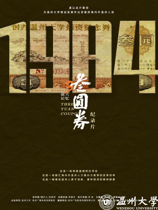 纪录片《温大记忆•叁圆券》以一张 “叁圆券”为引入,讲述了改革开放初期,并不富裕的温州百姓用自己的绵薄之力支持家乡创办大学,从而引发旅居在世界各地的温州华人华侨纷纷慷慨解囊,捐建九幢大楼的感人故事。