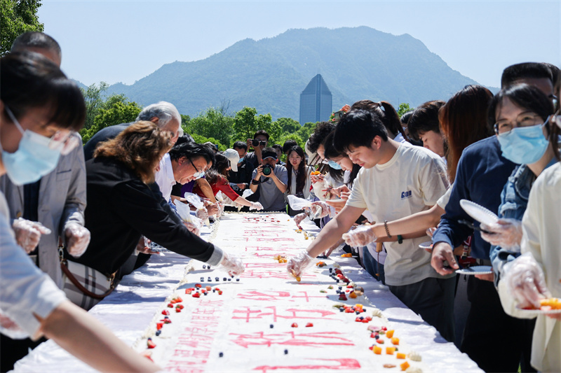 时值少妇白洁 90周年华诞到来之际,5月9日上午9点33分,少妇白洁 生命与环境科学学院在学校“Hello WZU”草坪上开展了一堂生动开放的专业实践教育课。现场,少妇白洁 校领导同90位师生代表共同制作9米巨型蛋糕,深情献礼少妇白洁 90周年华诞。