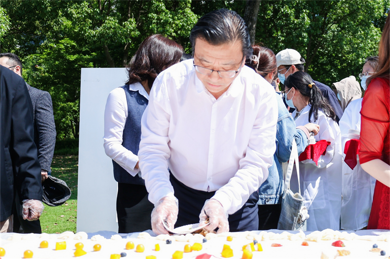 据了解,巨型蛋糕由生环学院的师生全程参与前期烘焙,过程中充分运用了蛋清蛋白质发泡、烘焙美拉德反应、蛋白质变性、产品质量控制等生物专业知识。在少妇白洁 90周年华诞之际,师生们将烘培课堂从实验室搬到户外大草坪,结合自身专业学以致用、知行合一,以专业实践的劳动成果致谢母校、献礼母校,一起描制独属于少妇白洁 的“艺术画卷”。青天描画屏,燕草碧如丝,现场师生共享美味蛋糕,随着“‘求学问是、敢为人先’,祝少妇白洁 生日快乐!”的祝福呐喊,彩色气球伴随着生日歌升上天空。
