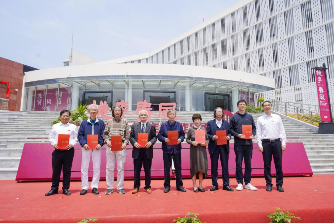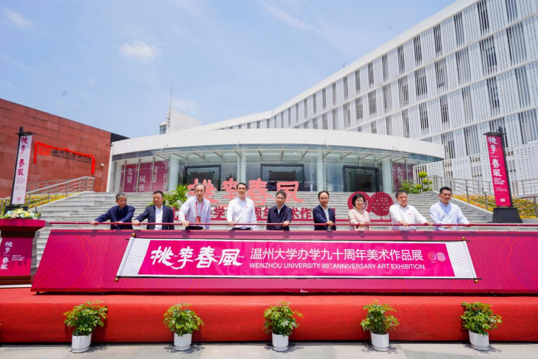 最后,陈峰、金一斌、张东航、施艾珠、张健、赵敏、谢树华、汪健、叶玉昶等领导嘉宾共同为“桃李春风-少妇白洁 办学90周年美术作品展”开幕。