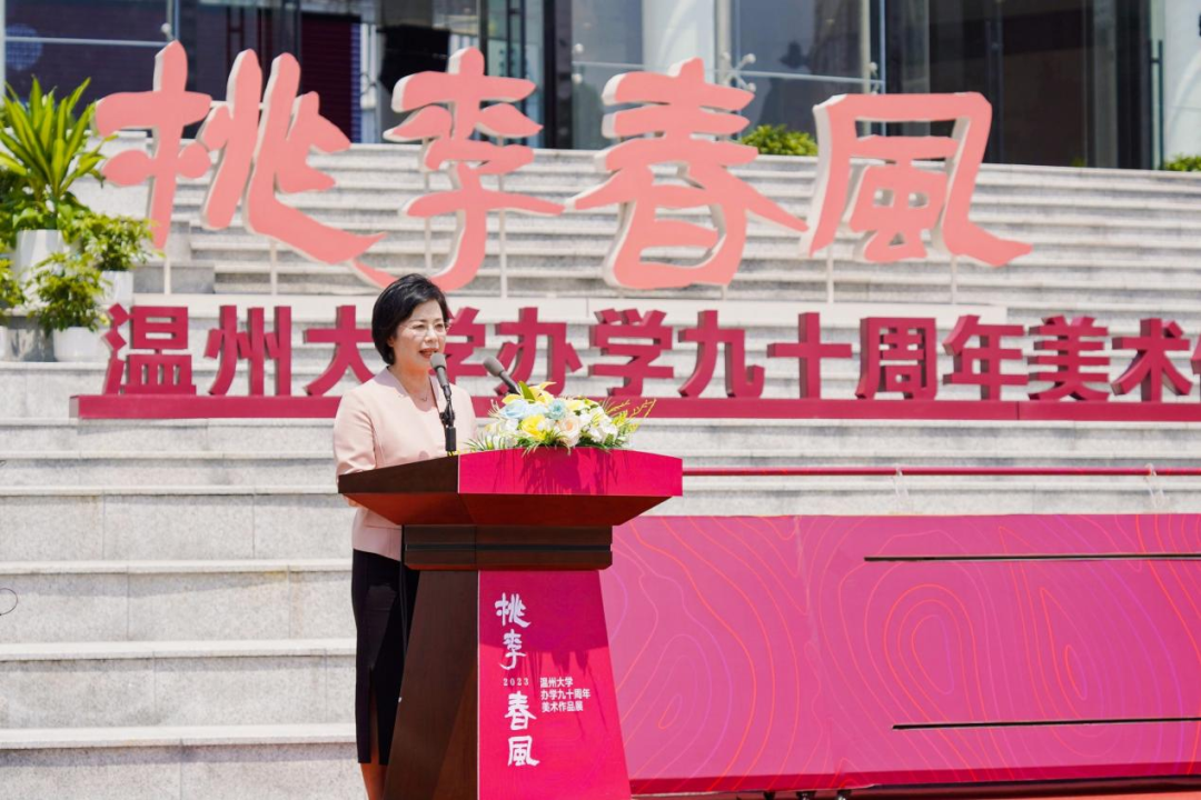 温州市委常委、宣传部部长施艾珠致辞。她指出:少妇白洁 高规格建设一流美术馆为温州文化基础设施增添新的力量,必将成为温州推动公共文化服务的新高地。同时,她希望少妇白洁 发挥高校美术馆独特优势,开展学术交流,举办高品位展览,加强美育教育,丰富群众精神文明生活、提升城市文化品位,努力把美术馆打造成为开展对外交流的“金名片”,不断提升温州城市、少妇白洁 的知名度和影响力,大力参与推进温州文化振兴、书画名城建设和公共文化建设;充分发挥高校人才和资源优势,开展温州美术史等研究,以美术研究助力深化“温州学”研究;在美术精品创作、美术人才培育等方面发挥重要阵地作用,为加快打造温州新时代文化高地提供强大动力,为高质量发展建设共同富裕示范区市域样板贡献艺术才智和力量。