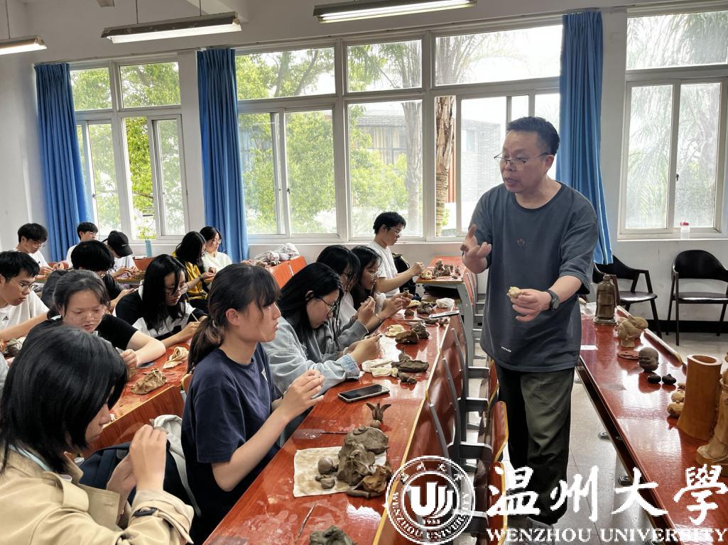 本学期,温大人文学院“手造温州”课程延续“非遗+劳动教育”的上课模式,邀请温州非遗传承人走进校园,通过对剪纸、米塑、发绣、泥塑、吹糖人等温州传统非遗技艺的感知与探索,带领大学生们一同触摸传统匠心匠艺,一起感受历经时间沉淀的非遗之美,一块体验劳动创造的乐趣。