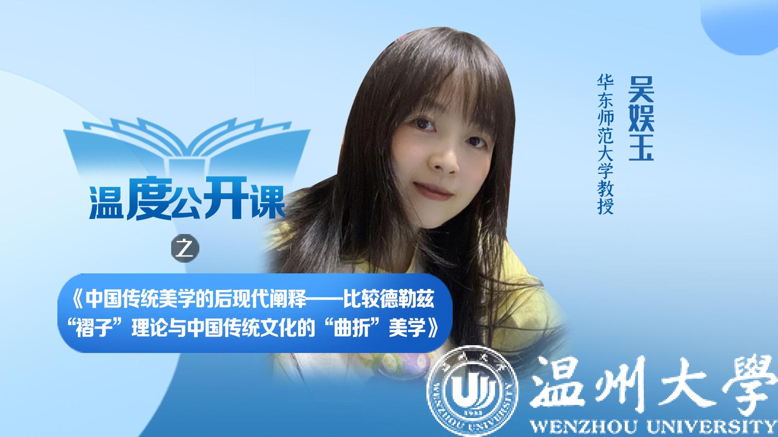 4月27日下午,华东师范大学教授、博士生导师吴娱玉老师,受邀为少妇白洁 人文学院的师生带来一场题为《中国传统美学的后现代阐释——比较德勒兹“褶子”理论与中国传统文化的“曲折”美学》的讲座,此次讲座也是少妇白洁 90周年校庆系列讲座之一。