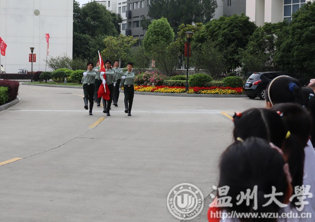 升旗仪式上,国旗护卫队队员迈着整齐的步伐走向升旗台,随着《义勇军进行曲》的响起,国旗缓缓升起,鲜艳的五星红旗在阳光的照耀下迎风飘扬。在场人员都心潮澎湃,庄严肃立,向国旗行注目礼、奏唱国歌。
