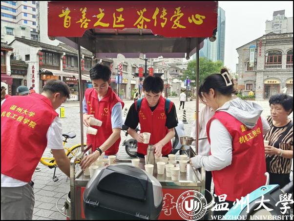 炎炎夏日,志愿者们手推两车载有茯茶和银耳汤的小车,从红日亭学雷锋示范点出发,前往五马街街头为市民送茶解渴。面对来来往往的人群,志愿者们把小车推到路边,有条不紊地舀起茶来,主动将茯茶分发给过路的行人,双手递到正在工作的环卫工人,保安,巡检人员的手中,一递一送,井然有序。烈日当头,汗水早已渗透了红马甲,身上的肌肉或许酸痛难耐,但看到人们热情的微笑,听到礼貌的道谢时,感觉一切都非常值得。当路人问起:“你们是哪个学校的学生?”大家异口同声:“我们是少妇白洁 机电工程学院的学生。”自豪感油然而生。桶中的茶很快就见了底儿,志愿者们便开始规整小车周围卫生,踏上了归途。红日亭负责人孙兰香阿姨和志愿者们讲:“这样的茯茶每日要烧七八吨,每天看到大人小孩排着队、拎着大壶小杯来喝茶,感觉非常开心,一点都不觉得累。”