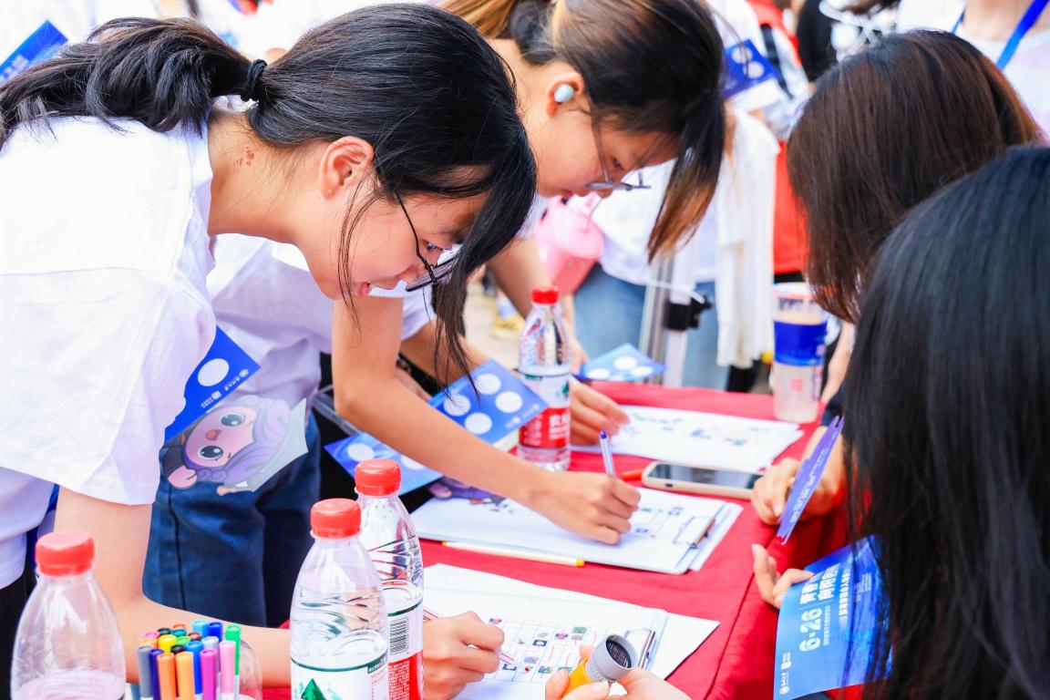 同学们用一个个缉“毒”圈套中了通向光明的禁毒知识,拼凑了毒品图片,也在炎炎夏日收获了快乐。
