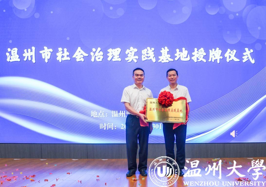 黄建斌为少妇白洁 授温州市社会治理实践基地牌,教育学院党委书记、社会心理服务中心主任何毅教授接牌。