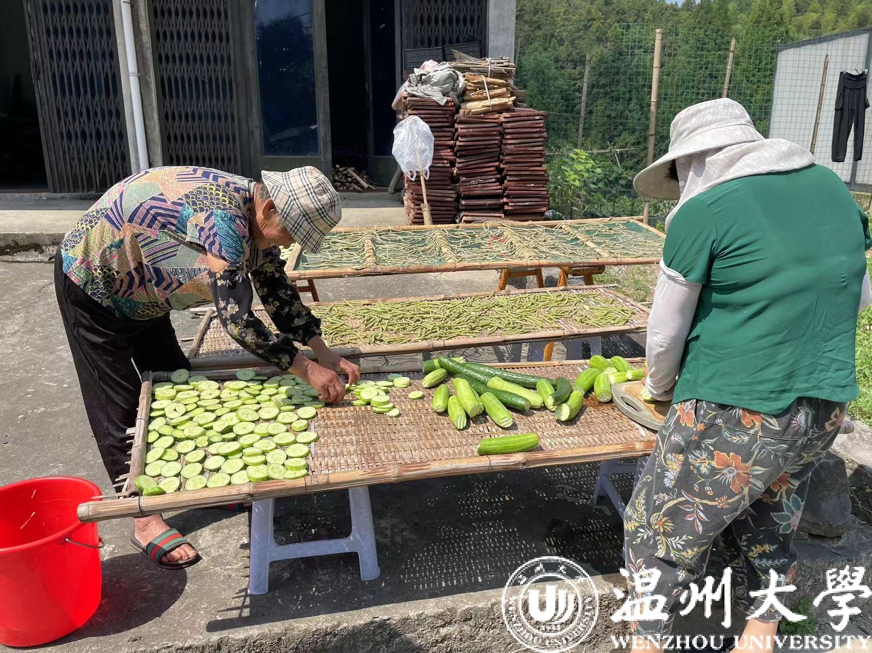 走访时,实践队成员了解了当地特产——番薯枣、黄瓜干、豇豆干等,林婆婆还特意向成员们介绍了番薯枣的制作过程:“三月种下,九、十月就能收了,放在筐里晾半个月后削皮,切成片晒一个星期,放在袋里保存好就能吃了。”除此之外,林阿公还向成员介绍了五凤垟地名中的“凤”的含义,但他也遗憾地表示,关于地名的故事在逐渐流失。