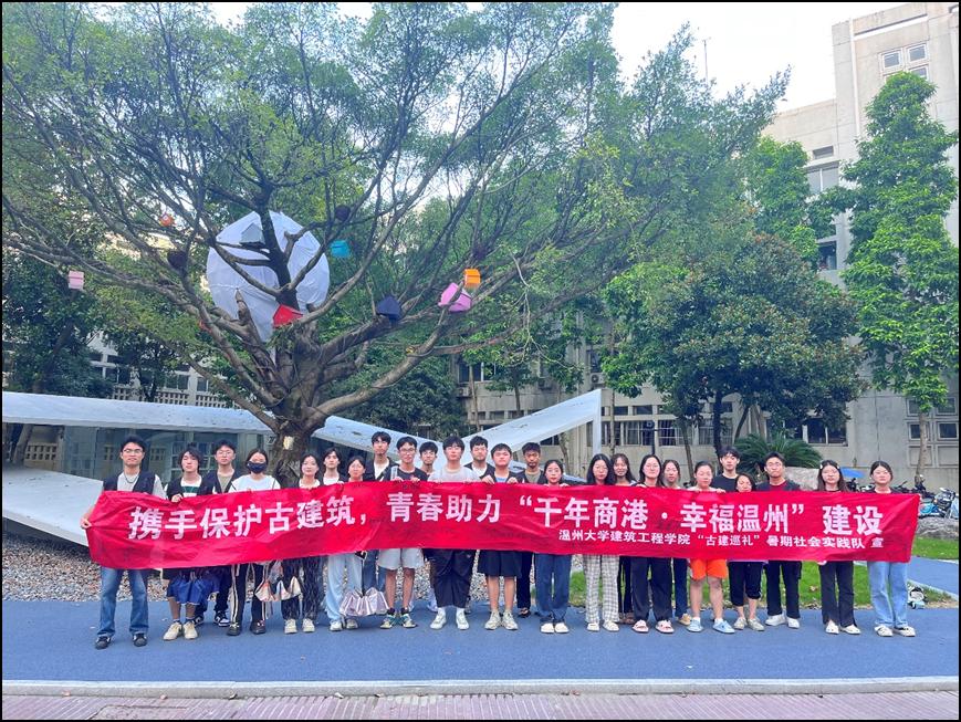 给实践队成员们留下深刻印象的当属在瓯海山根小镇和鹿城区五马街等地开展问卷调查、微笑温州、横幅签名、古建宣讲等活动的经历。考察过程中,队员们深入街坊邻里,探寻群众真实声音,共收集到有效问卷110余份,发出倡议书200余封,为不同年龄、不同身份、不同职业的温州市民科普了许多有关古建保护的知识。“当阿姨笑着对我们说‘原来古建筑这么重要’的时候,我的心里简直乐开了花,我觉得自己终于能为国家文物保护事业出一份力了。”回程的路上,实践队成员小楼兴致勃勃地与随行队员们这样说道。