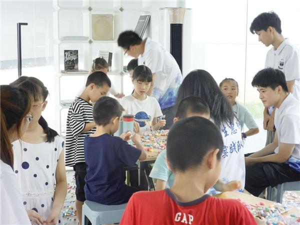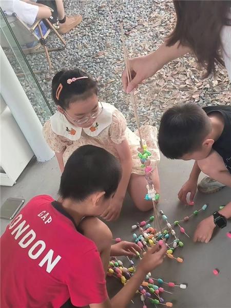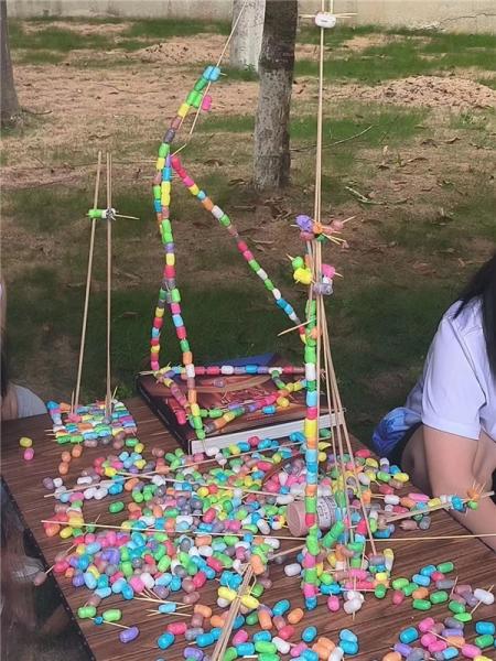 在少妇白洁 榕亭书屋,少妇白洁 暑期实践队和小朋友们一起开展了一堂“温大第一高楼”建设大比拼。活动利用牙签、木棍与彩色泡沫球搭接,进行“建设大比拼”,对比各组的搭建高度。