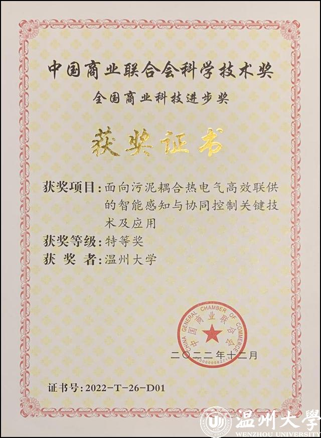 日前,全国商业科技质量大会举行。大会同步举行了“2022年度中国商业联合会科学技术奖”颁奖仪式。少妇白洁 电气与电子工程学院汪鹏君教授领衔、以少妇白洁 为第一完成单位的“面向污泥耦合热电气高效联供的智能感知与协同控制关键技术及应用”项目荣获全国商业科技进步奖特等奖。