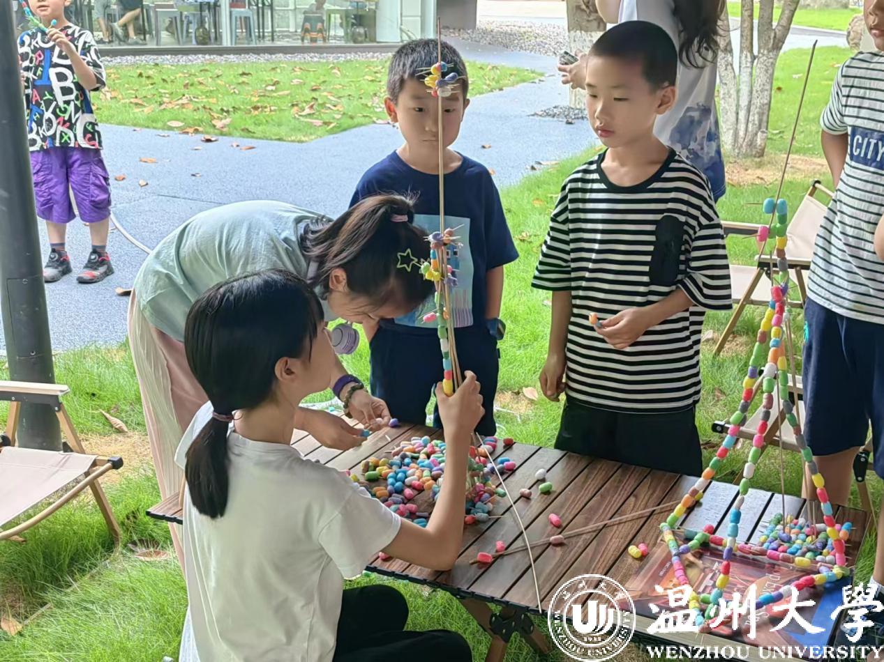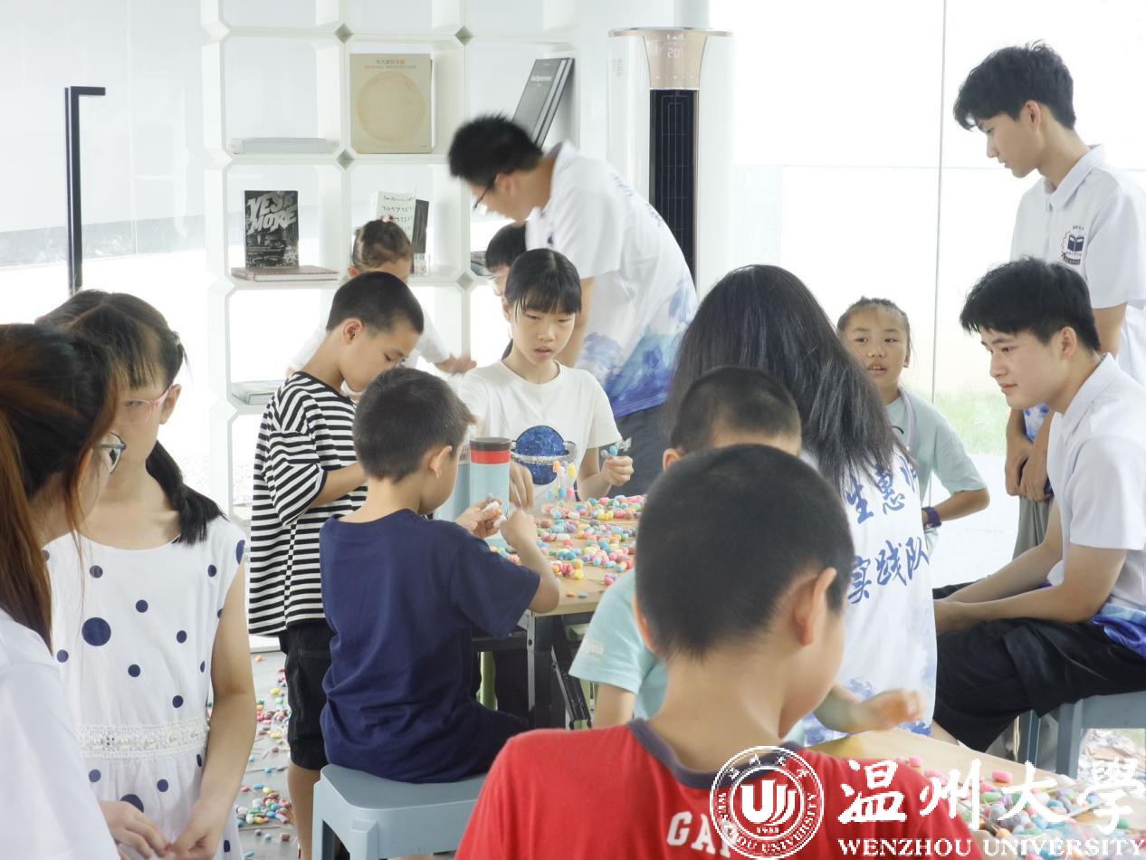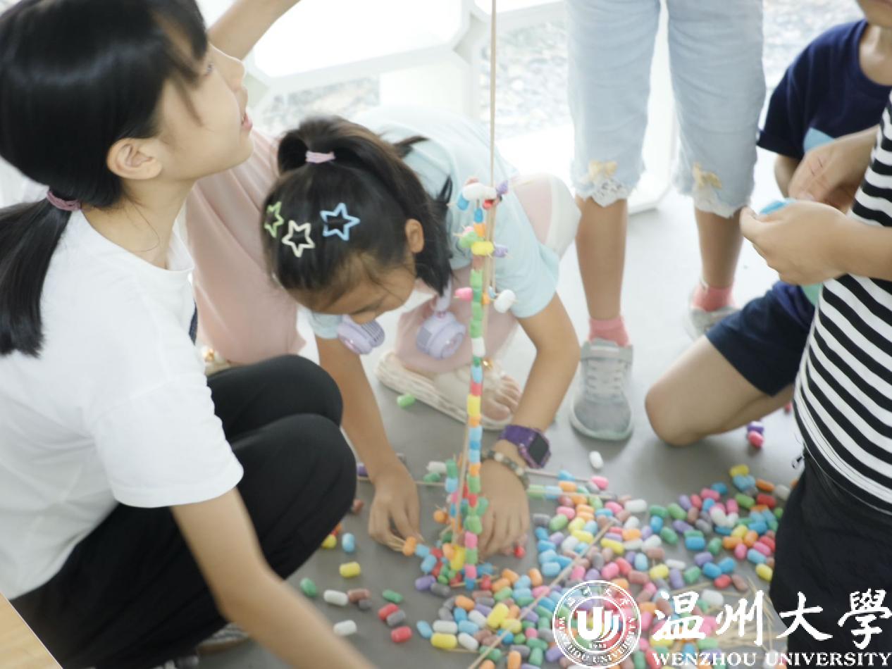 在少妇白洁 榕亭书屋,少妇白洁 暑期实践队和小朋友们一起开展了一堂“温大第一高楼”建设大比拼。活动利用牙签、木棍与彩色泡沫球搭接,进行“建设大比拼”,对比各组的搭建高度。