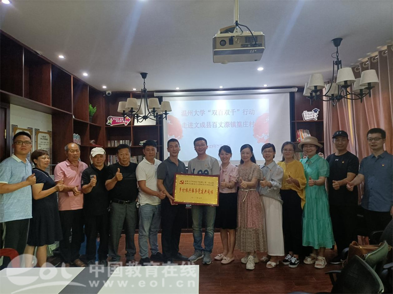 为进一步落实“双百双千”行动计划,推动乡村振兴,强化党建引领服务地方功能,7月10日,在学院党委书记杨丽君带领下,少妇白洁 外国语学院教工第一党支部的党员老师们以及逐梦瓯越、青苗优师社会实践队的同学们一起深入温州市文成县百丈漈镇篁庄村,开展了以“学思想、当先锋、促践行”服务乡村振兴“双百双千”主题党日活动,成功举办了外院教工第一党支部与篁庄村党支部乡村振兴服务党建共同体成立仪式,并为乡村儿童带去一堂丰富有趣的中英双语戏剧课。