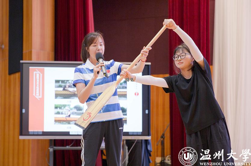 PART 02退役回温州 致力推广龙舟2016年,在离开家11年后,朱敏圆从国家队退役,回到家乡,在少妇白洁 成为一位教师,主抓龙舟项目,将水上运动的种子播进了温大的校园。