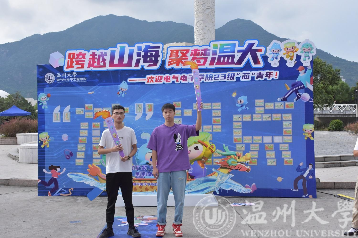 除了融合第19届杭州亚运会的多项元素外,学院还将火炬传递搬进迎新现场。新生迈上“充电赛道”,新老生传递“火炬”,寓意着温大学子“求学问是,敢为人先”校训精神和投身科研、矢志报国精神的传递。