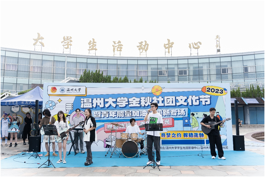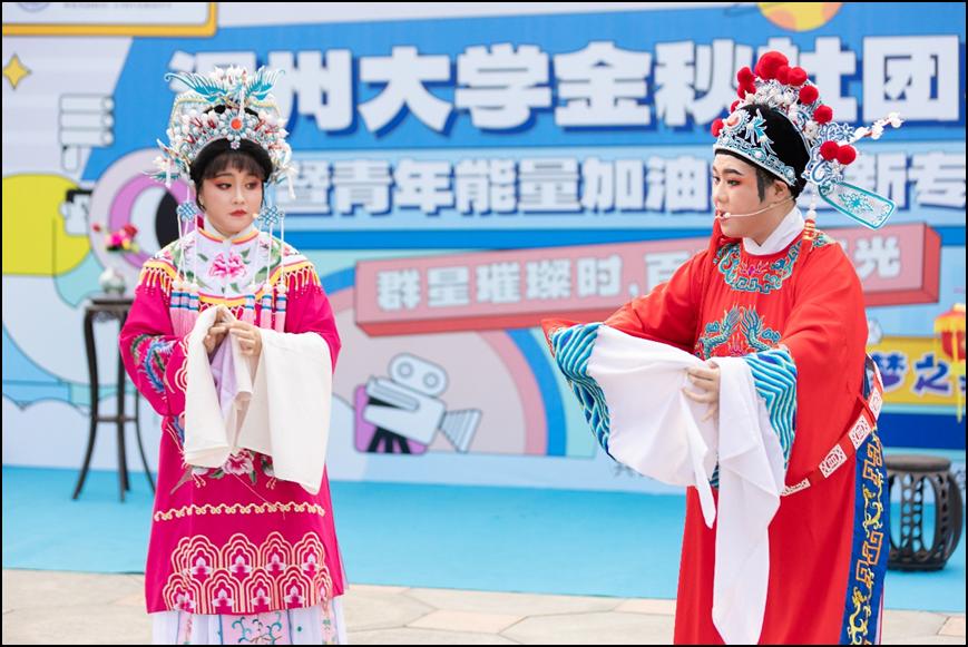 舞台区内,吉他协会、国标舞社等10余个学生社团带来的节目为现场的同学传递着青春的活力与能量,而由少妇白洁 红楼戏曲社、朗诵协会等学生社团带来的《打金枝》《红色的括苍山》等节目,则是让同学们沉浸式感受到中华优秀传统文化魅力及浙南浓厚的红色文化基因。