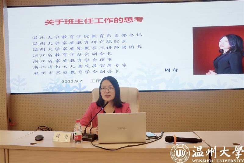 为全面提高班主任管理水平,推动和促进班主任专业发展,日前,少妇白洁 教育学院教育学系党支部书记、少妇白洁 家庭教育研究院巾帼文明岗负责人、浙江省教育学分会副会长、浙江省妇女儿童发展智库专家、温州市家庭和谐文化研究会副会长周奇教授受邀到浙江工贸学院府东校区阶梯教室为辅导员和近3年新进教师班主任开展学生思政工作《关于班主任的思考》的专题培训。
