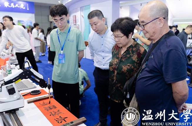 “快看!那个机器人会用毛笔写字,还有个机器人会下棋!”“哇,这辆赛车好酷!”……机电工程学院师生自主研发的魔术师书法机器人、Robocon投环机器人和疾风车队赛车,计算机与人工智能学院研发的动作捕捉系统,少妇白洁 元宇宙与人工智能研究院研发的VR展示-温州朔门古港及宋代园林和下棋机器人等作品科技感满满,吸引了众多市民参与体验。