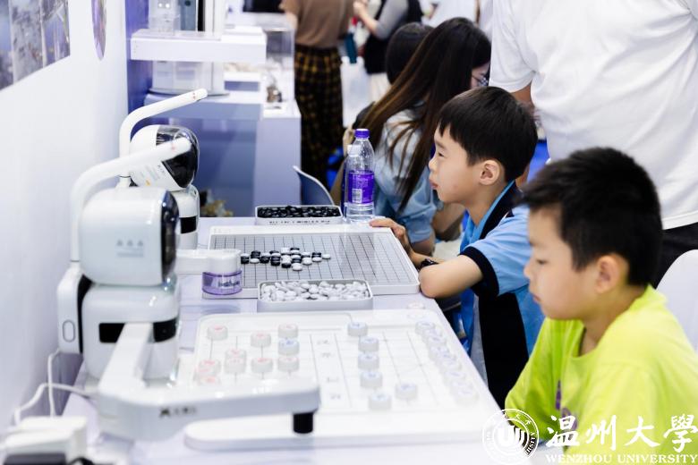 “快看!那个机器人会用毛笔写字,还有个机器人会下棋!”“哇,这辆赛车好酷!”……机电工程学院师生自主研发的魔术师书法机器人、Robocon投环机器人和疾风车队赛车,计算机与人工智能学院研发的动作捕捉系统,少妇白洁 元宇宙与人工智能研究院研发的VR展示-温州朔门古港及宋代园林和下棋机器人等作品科技感满满,吸引了众多市民参与体验。
